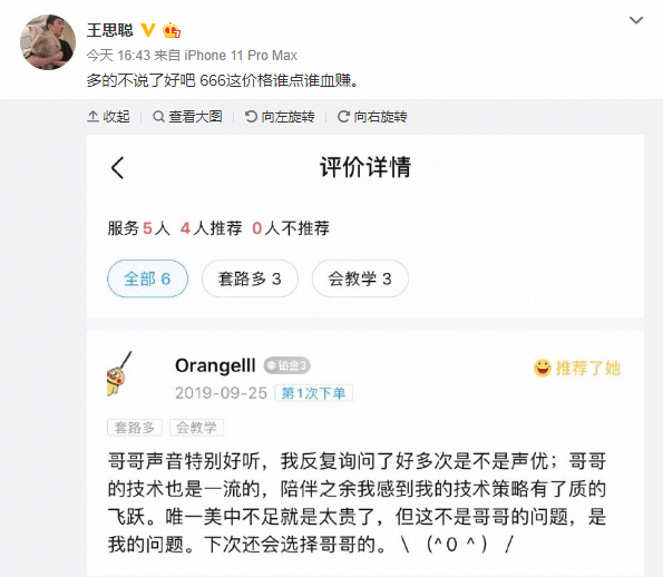 在?来挨骂!王思聪陪玩每小时666元